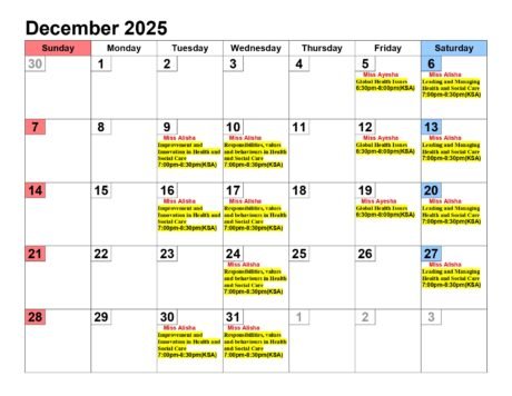 ATHE Level 5 Health Care Management December 2025 Timetable